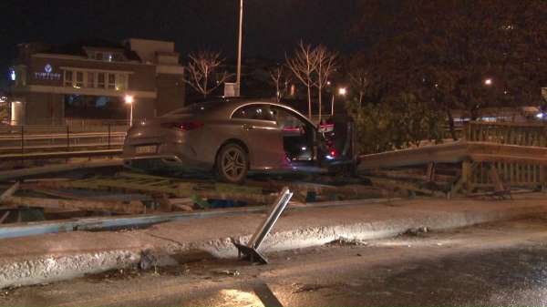 Kadıköy'de alkollü sürücü direksiyon hakimiyetini kaybederek önce bariyerlere çarptı, ardından da köprünün üzerinde asılı kaldı. Kaza yapan alkollü sürücü kazayı çekmek için olay yerine giden basın mensuplarına saldırdı.