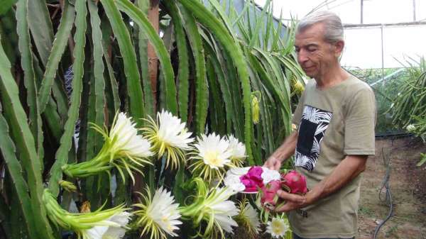Mersin'in Silifke ilçesinde ejder meyvesi olarak bilinen pitaya bahçesinde, aşırı sıcaklar nedeniyle hasatta gecikme yaşandı. İkinci hasat için çiçek açan ejder meyvesine üreticiler büyük bir özveriyle bakıyorlar.