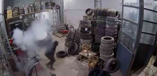 Olay sırasında iki çalışan, bir aracın lastiğini tamir edip şişirmeye çalışıyordu. Patlama, iş yerindeki güvenlik kameralarına saniye saniye yansıdı. Görüntülerde, lastiği şişirmeye çalışan çalışanların bir anda yaşanan patlama karşısında hızla geri çekildikleri görülüyor. Şiddetli patlamaya rağmen şans eseri kimsenin yaralanmaması, büyük bir tehlikenin ucuz atlatılmasını sağladı.