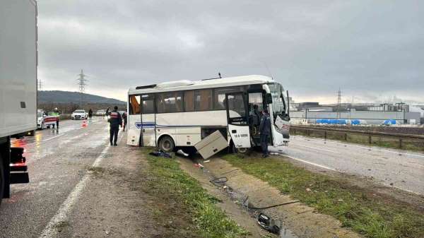 Balıkesir'de rüzgar enerjisi parçaları üreten bir fabrikanın işçilerini taşıyan servis kaza yaptı. Minibüste bulunan 18 işçiden 4'ü yaralanırken, facia ucuz atlatıldı.