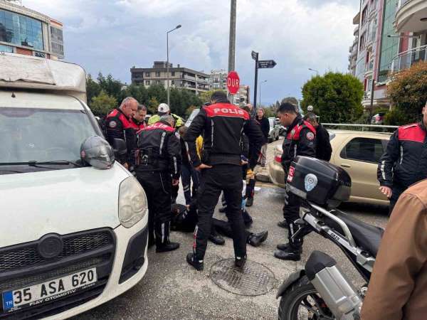 Aydın'ın Efeler ilçesinde, Motosikletli Polis Timi ile panelvan aracın çarpışması sonucu meydana gelen trafik kazasında bir polis memuru yaralandı.