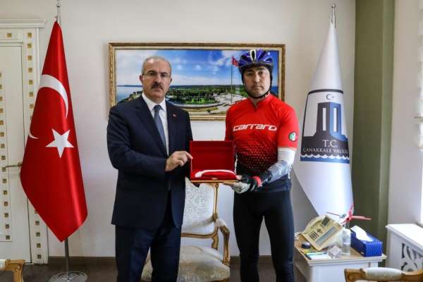 19 Mayıs Atatürk'ü Anma Gençlik ve Spor Bayramı vesilesiyle düzenlenen 2 bin kilometrelik '19 Mayıs Milli Mücadele Rotasına Saygı ve Vefa' için bisiklet sürüşünü genç bisikletçi Murat Tecimen gerçekleştirecek. Türk bayrağını Çanakkale'den Samsun'a ulaştıracak olan Tecimen, Vali Ömer Toraman'ı ziyaret etti. Vali Toraman, Tecimen'e bu anlamlı görevinde başarılar diledi. Türk bayrağını Vali Toraman'dan teslim alan bisiklet sürücüsü yola çıktı.