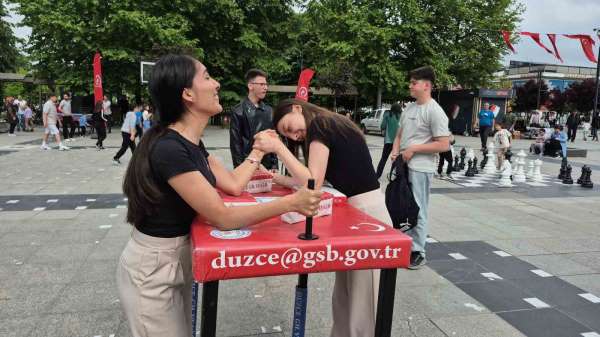 Gençlik haftası etkinlikleri yapılan organizasyonlarla Düzce'de kutlanmaya devam ediyor. Bu çerçevede Anıtpark meydanından Gençlik ve Spor İl Müdürlüğü ile Düzce Belediyesi Gençlik ve Spor Hizmetleri Müdürlüğü antrenörleri 'Spor sokağı' kurdu. Ayak voleybolundan futbol sahasına, saha satrancından bilek güreşine kadar birçok platform kuran antrenörler buralarda gençlere ve çocuklara spor yapma imkanı sağladı.