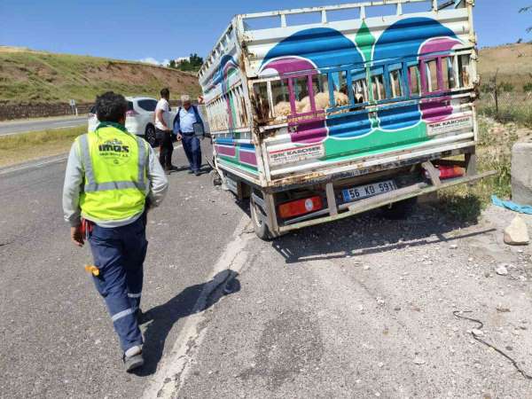 Siirt'in Kurtalan ilçesi girişinde koyun taşıyan kamyonet kaza yaptı. Araçta maddi hasar meydana geldi.
