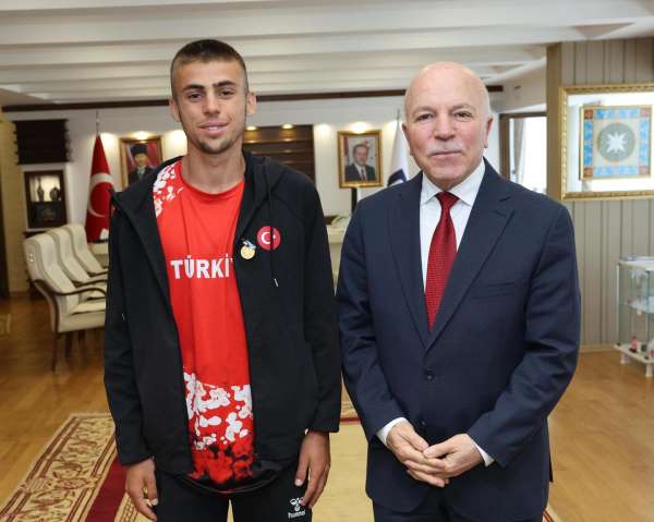 Erzurum Büyükşehir Belediye Başkanı Mehmet Sekmen, atletizmde aldığı başarılarla ülkemize madalyalar getiren Ömer Faruk Bozdağ'ı tebrik etti.