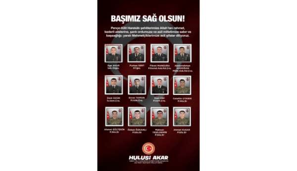 AK Parti Kayseri Milletvekili ve TBMM Milli Savunma Komisyonu Başkanı Hulusi Akar; Pençe Kilit Harekatı bölgesinde şehit olan 12 asker için başsağlığı mesajı yayımladı.