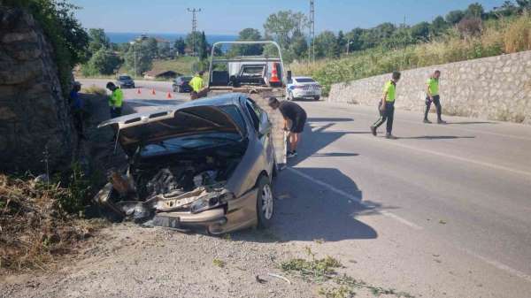 Sinop'ta otomobilin istinat duvarına çarptığı kazada 1'i bebek 3 kişi yaralandı.