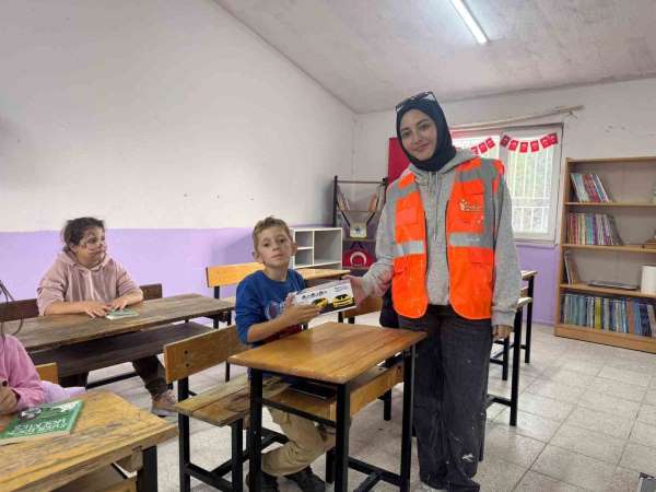 Okul öğrencilerinden 9 yaşındaki Emine, 'Ben 3. sınıfa gidiyorum. Salur Köyü'nde yaşıyorum. Okulumuza boya yapıyorlar, kütüphane açıyorlar, sıralarımızı düzeltiyorlar. Ablalarımıza, abilerimize çok teşekkür ediyorum' diye konuştu.