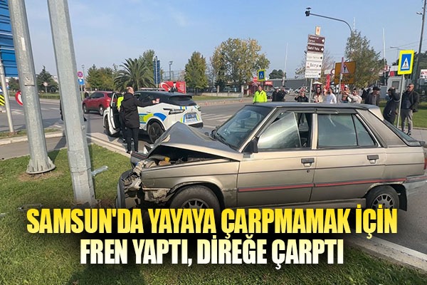 Samsun'un İlkadım ilçesinde sürücüsünün yayaya çarpmamak için ani fren yaptığı otomobil kontrolden çıkarak aydınlatma direğine çarptı. Kazada araçta yolcu olarak bulunan kadın yaralandı.