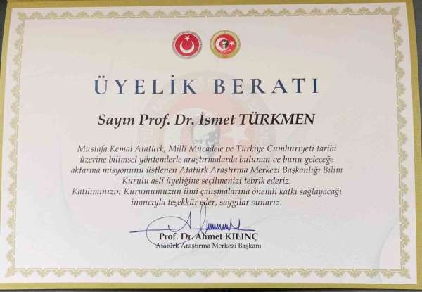 Tokat Gaziosmanpaşa Üniversitesi (TOGÜ) Güzel Sanatlar Fakültesi Dekanı Prof. Dr. İsmet Türkmen'in Atatürk Araştırma Merkezi Bilim Kurulu aslı üyeliğine seçilmesi üniversitenin ulusal bilimsel görünürlüğünü güçlendiren önemli bir adım oldu.