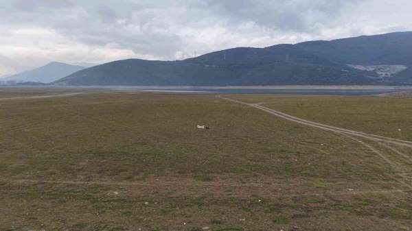 Bursa'nın şeftali, armut, siyah incir ve kiraz gibi önemli tarım ürünlerinin üretildiği tarım alanlarının sulanmasında önemli rol üstlenen Gölbaşı göletinin, aralık ayında olunmasına rağmen içler acısı hali tedirgin ediyor.