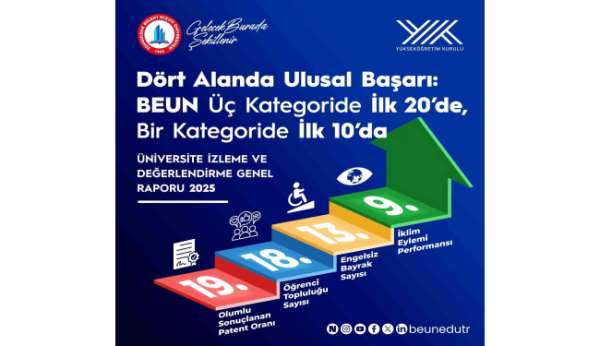 Zonguldak Bülent Ecevit Üniversitesi (BEUN), Yükseköğretim Kurulu (YÖK) tarafından yayımlanan 'Üniversite İzleme ve Değerlendirme Genel Raporu-2025' sonuçlarına göre birçok alanda gösterdiği üstün performansla Türkiye genelinde dikkat çekici bir başarıya imza attı.