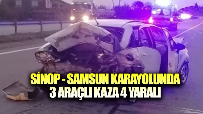Samsun'un Alaçam ilçesinde meydana gelen trafik kazasında 3 araç çarpıştı, 4 kişi yaralandı.