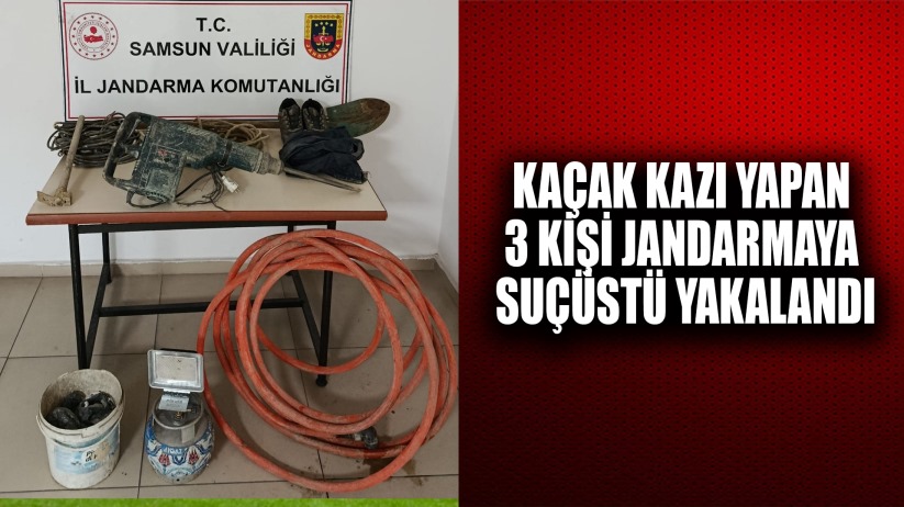 Samsun'un Kavak ilçesinde izinsiz kazı yaptıkları tespit edilen 3 kişi, jandarma ekiplerince suçüstü yakalandı.