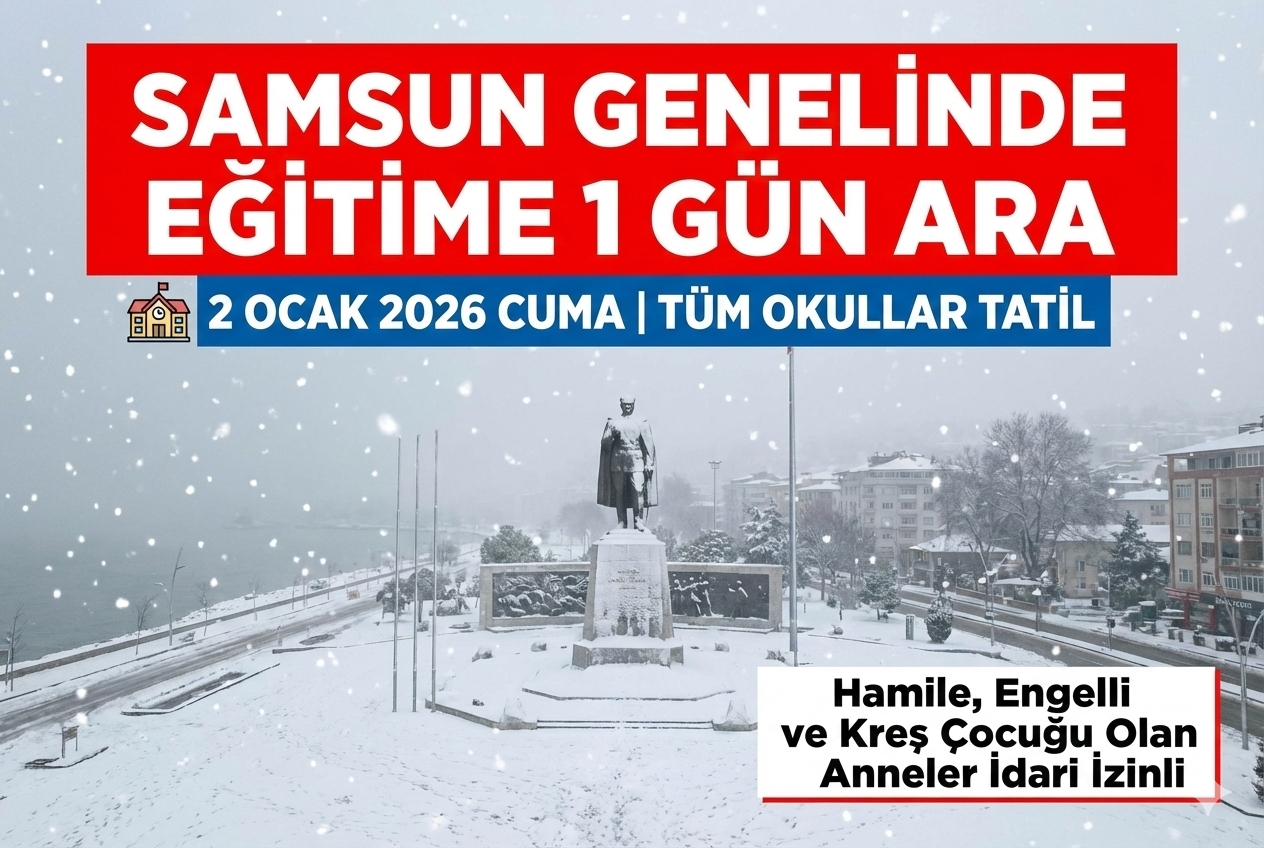 Samsun'da etkili olan kar yağışı sonrası oluşabilecek olumsuzluklar nedeniyle il genelinde eğitime 1 gün ara verildi.
