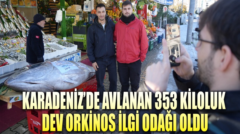 Karadeniz'de avlanan ve Samsun'un Atakum ilçesinde bir balık tezgâhında sergilenen 353 kilo ağırlığında 2,5 metre uzunluğundaki dev orkinos, görenleri hayrete düşürdü.