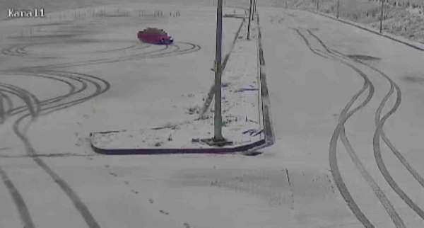 Karla kaplı sınav parkurunda drift yaptılar, kameraya yakalandılar