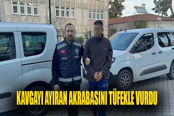 Samsun'da çıkan kavgayı ayıran akrabasını tüfekle vurarak yaralayan şahıs, polis ekiplerince yakalanarak adliyeye sevk edildi.