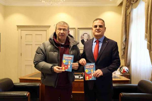 Türk futbolunun efsane golcülerinden Avrupa gol kralı Tanju Çolak, Muğla Valisi Dr. İdris Akbıyık'ı makamında ziyaret ederek, çocuklar için yazılan 'Gerçek Kral Tanju Çalak' kitabını hediye etti.