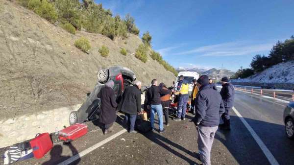 Kastamonu'nun Hanönü ilçesinde otomobilin buzlanan yolda takla atarak ters dönmesi neticesinde meydana gelen kazada 4 kişi yaralandı.