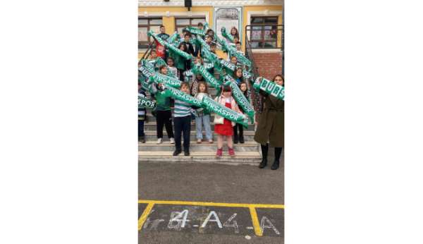 Öğretmenleri Arzu Bilgen Kösen de bu coşkuya ortak oldu. Bursaspor atkılarıyla poz veren öğrenciler, takımlarının bu sezonu da zirvede tamamlayıp Süper Lig yolunda emin adımlarla yürüyeceğine inanıyor.