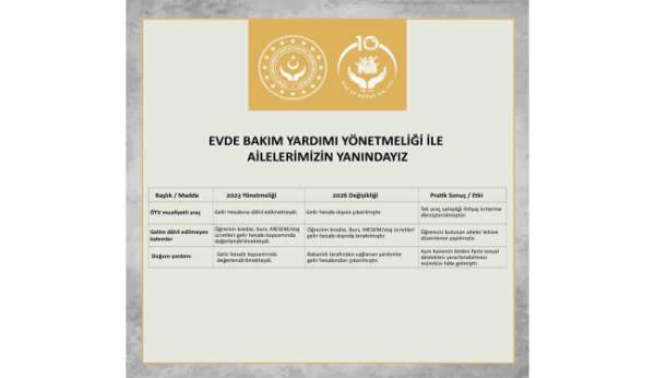 Buna göre, hane gelirinin hesaplanmasına ilişkin usul ve esaslar, evde bakımdan yararlananların lehine olacak şekilde yeniden düzenlendi. Değişiklik, özellikle taşınmaz, araç ve bazı sosyal ve eğitim destek ödemelerinin hane gelir hesabına dahil edilme biçiminde sadeleştirme ve netleştirme sağlayacak.
