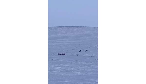 Erzurum'un Karayazı ilçesinde, gündüz saatlerinde meydana gelen olayda, aç kalan kurtlar yerleşim alanına indi.
