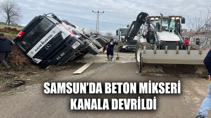 Samsun'un Alaçam ilçesinde meydana gelen trafik kazasında, Alaçam Belediyesi'ne ait beton mikseri kanala devrildi.
