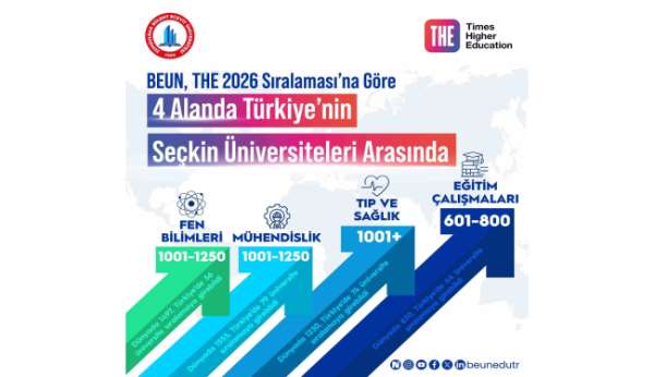 Zonguldak Bülent Ecevit Üniversitesi, dünyanın saygın üniversiteleri arasında yer alma hedefi doğrultusunda sürdürdüğü nitelikli, planlı ve sürdürülebilir akademik çalışmalarının karşılığını, uluslararası değerlendirme kuruluşlarının listelerinde istikrarlı biçimde almaya devam ediyor. BEUN, 2025 yılında olduğu gibi 2026 yılında da 'Tıp ve Sağlık', 'Mühendislik', 'Fen Bilimleri' ve 'Eğitim Çalışmaları' alanlarında THE sıralamalarında yer alarak araştırma ve yenilik odaklı vizyonunu bir kez daha tescilledi.