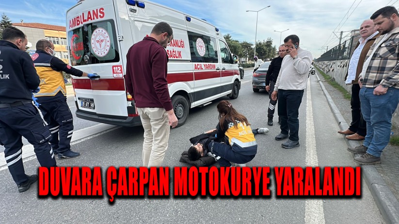 Samsun'da raylı sistem hattı duvarına çarpan motokurye yaralandı.
