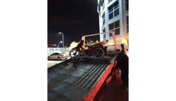 Tokat'ın Erbaa ilçesinde kasksız şekilde motosiklette yatarak ilerleyen iki kişi cep telefonu kamerasına yansıdı. Polis ekiplerince tespit edilen iki kişiye toplam 66 bin 206 TL idari para cezası uygulanarak plakasız motosiklet trafikten men edildi.