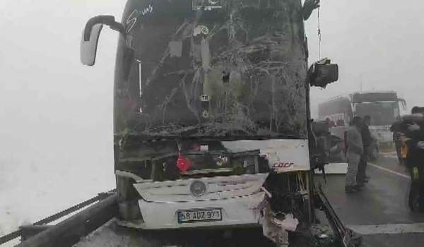 Sivas'ın Gemerek ilçesinde sisli hava nedeniyle aralarında yolcu otobüsünün bulunduğu 4 aracın karıştığı zincirleme trafik kazasında 7 kişi yaralandı.
