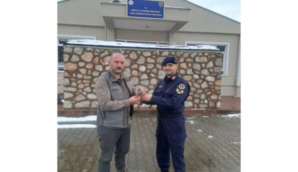 Sinop'ta jandarma ekipleri tarafından devriye sırasında yaralı halde bulunan kuş, tedavisi yapılmak üzere Doğa Koruma ve Milli Parklar Müdürlüğü ekiplerine teslim edildi.