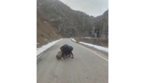 Tokat'ta seyir halindeyken yola düşen kaya parçası, vatandaşları dikkati ve duyarlı davranışı sayesinde tehlike oluşturmadan yol kenarına çekildi.