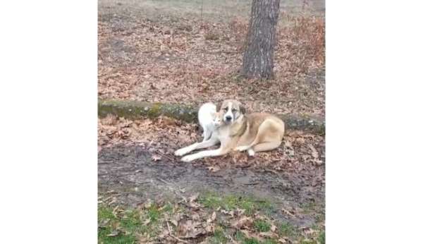 Kedi ve köpeğin doğal ve dostane halleri, izleyenlere tebessüm ettirirken, mezarlıkta karşılaşılan bu sıcak görüntüler dikkat çekti.