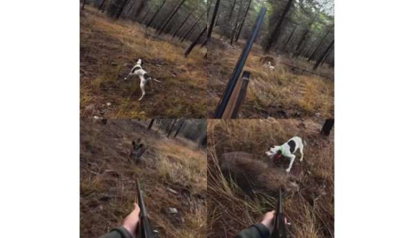 Avcı Öncüt'ün kask kamerasına yansıyan görüntülerde, köpeğin çalılık alanda ferma vermesi, hemen ardından yaban domuzunun aniden ortaya çıkarak koşması ve avcının panik içinde ateş açtığı anlar yer aldı.