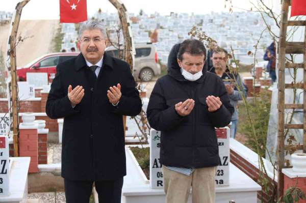 Deprem anında Osmaniye Valiliği görevini yapan ve şu anda Eskişehir Valisi olan Dr. Erdinç Yılmaz, acılı baba ile birlikte Seydi Çelik'in depremde hayatını kaybeden ailesinin kabirlerini ziyaret edip mezarları başında dua okudu. Vali Yılmaz, yine 6 Şubat depremlerinde hayatını kaybeden 20 yaşındaki Merve Özdemir ve 44 yaşındaki Hülya Özdemir'in de kabirlerini ziyaret etti. Kur'an-ı Kerim tilaveti sonrasında açıklamalarda bulunan Vali Yılmaz, 'Tabii o günü yeniden yaşıyoruz, hissediyoruz. O korkunç gün ben Osmaniye'deydim. Allah böyle bir felaketi hiç kimseye, hiçbir millete, milletimize yaşatmasın. Buradaki 6 canımız da bu depremlerde hayatını kaybetmiş. Onlar için dua ettik. Asri Mezarlığı'ndaki 20 insanımız, 6 Şubat depremlerinde hayatını kaybetmiş. Diğer ilçelerimizde olan 9 vatandaşımızla birlikte 29 vatandaş var. Bu acı Türkiye'mizin yüreğini yaktı, her yere yayıldı. Ağır bir acıydı. Asrın diyoruz ama asırların en büyük depremini yaşadık. Ancak millet, devlet kenetlendi, hamdolsun bunun üzerinden geldi. Tabii giden canlar gelmiyor, onlar için de dua ediyoruz, dua edeceğiz. Dileğimiz, duamız bir daha böyle acıların yaşanmamasıdır. Ben bir kez daha 6 Şubat depremlerinde kaybettiğimiz 53 bin 537 vatandaşımıza Allah'tan rahmet diliyorum. Ben onların şehit olup cennete gittiklerine inanıyorum. Allah'ın izniyle mekanları cennettir inşallah. Merhumların yakınlarına Cenab-ı Allah'tan sabır, tedavisi devam eden yaralılarımıza acil şifalar diliyorum' dedi.