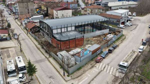Başiskele'de yapımı süren Vezirçiftliği Kapalı Spor Salonu'nda çalışmalar devam ediyor.