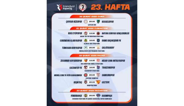 Trendyol Süper Lig'de 23. hafta programı şöyle: