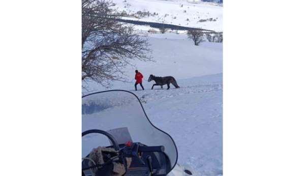 Bingöl'de dağda karlar arasında mahsur kalan ve kurt saldırısına uğrayarak yaralanan at, AKUT Bingöl ekibi tarafından kurtarıldı.