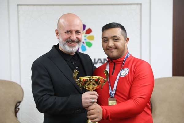 Geçen yıl düzenlenen Türkiye Şampiyonası'nda altın madalya kazanan Samet Balcı, elde ettiği bu önemli başarıyı kendisine her zaman destek olan Başkan Çolakbayrakdar'a ithaf ederek madalyasını Başkan Çolakbayrakdar'a takdim etmişti. Yeni şampiyona öncesinde antrenman programını daha da yoğunlaştıran Balcı, çalışmalarını hem fiziksel hem de mental hazırlık üzerine sürdürüyor. Disiplinli çalışması ve azmiyle dikkat çeken millî sporcu, mart ayında düzenlenecek organizasyonda yeniden kürsünün zirvesine çıkmayı hedefliyor. Özel çocukların başaramayacağı hiçbir şeyin olmadığını belirten Başkan Çolakbayrakdar, Kocasinan sporcularının bu anlamda büyük bir örnek teşkil ettiğine dikkat çekerek, 'Özel sporcularımız, sadece kendi hayatlarını değil, tüm toplumumuzu etkileyen büyük bir başarı hikâyesi yazıyor. Onların yeteneklerini ortaya çıkarma noktasında da Kocasinan Spor Kulübü olarak önemli bir rol üstleniyoruz. Ayrıca, Türkiye Down Sendromlu Futsal Millî Takımı ve antrenörümüz Uğur Arı ile ekibini tebrik ediyorum. İki defa Avrupa Şampiyonası'nda elde ettikleri başarıların ardından dünya üçüncüsü ve dünya ikincisi olarak gururumuzu yaşattılar. Ay-yıldızlı bayrağımızın dalgalanması ve İstiklal Marşı'mızın dinletilmesi için desteğimiz her zaman devam edecek. Özel çocuklarımıza, sadece sporda değil, hayatın her alanında desteklerimizi artırarak devam ettireceğiz.' ifadelerine yer verdi.