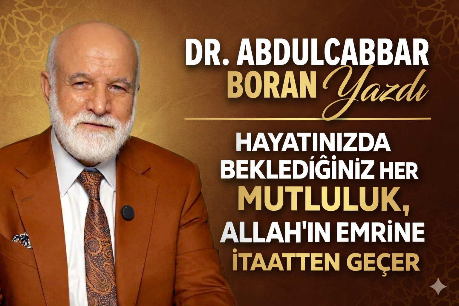 Bunları neden söylüyorum? İnsan bu zahiri âlemi, maişetiyle (eviyle, arabasıyla vs.) dört başı mamur yaparsa da bu zahiri âlemde mutlu olamaz.Nefsindeki 19 afet sebebiyle şeytan devamlı afetlere tesir eder, devamlı iç dünyasında kavgayı yaşar. Bu kavga; ailesinde eşine sirayet eder, bu kavga; mahallede komşusuna sirayet eder, bu kavga; ülkede başka insanlara sirayet eder. Biz insanlar yaşadığımız hayatta tek biletli bir yolculuk yapmıyoruz, daima çift biletimiz var. İşte Osmanlı diyor ki: "Ne kendi eyledi rahat, ne âleme verdi huzur, çekti gitti dünyadan, dayansın ehl-i kubur."İnsanoğlu kendine verdiği zarar kadar etrafa da zarar veriyor, ama tersi de mümkün;eğer siz mutlu ederseniz, mutlu olursunuz. Öyleyse herkesin Allah'ın hakikatlerini unuttuğu ve hayatından tamamen çıkardığı bir dönemde Allah'ın reçetesini dikkate alarak hepimiz hayatımızı tanzim etmek durumundayız.