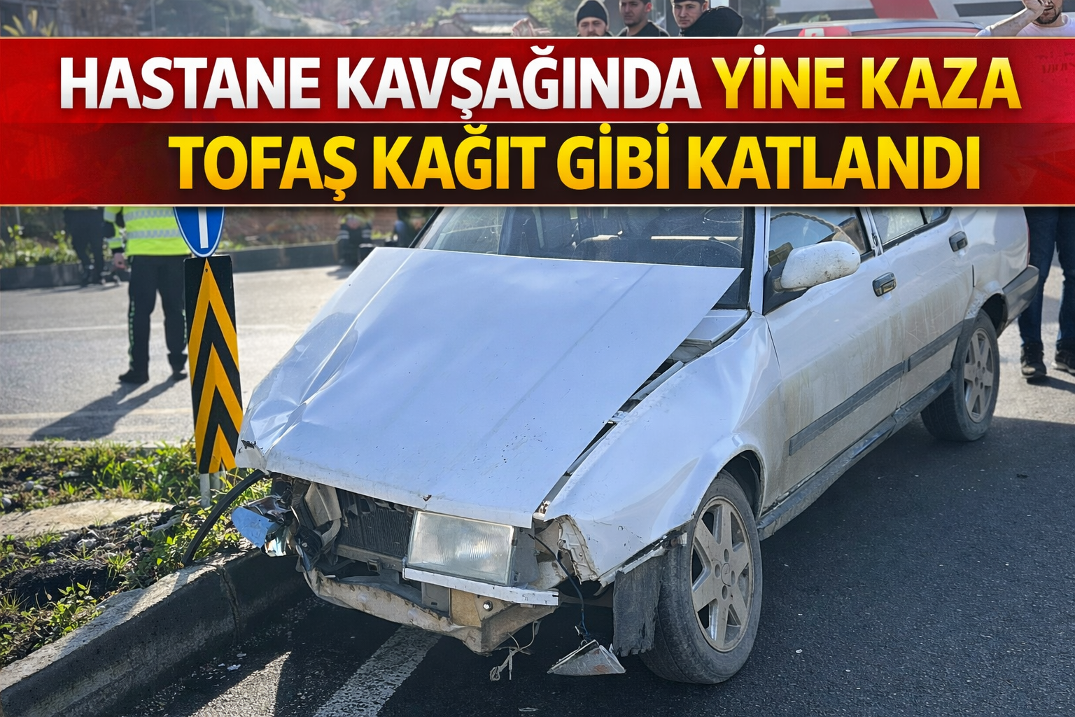 Sıklıkla kazaların meydana geldiği Samsun Şehir Hastanesi kavşağında otomobil ile çarpışan Tofaş Şahin, kağıt gibi katlandı.