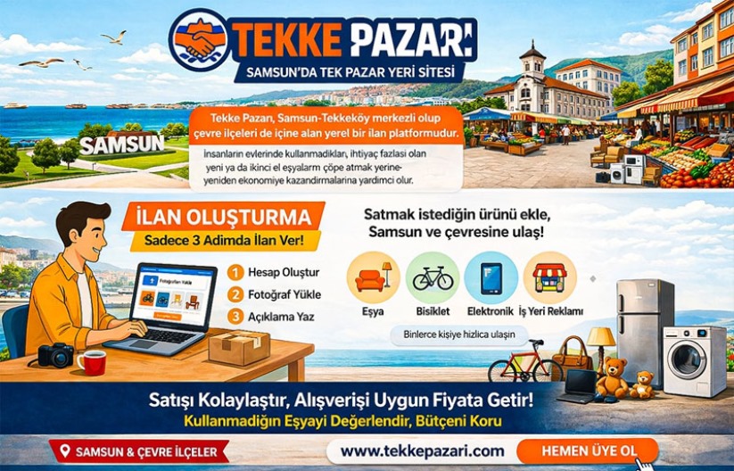 Kolay kullanılabilen ara yüzü, pratik ilan ekleme süreci. Yerel filtreleme seçenekleri ve tamamen masrafsız yapısıylaTekke Pazarı. Samsun ve ilçelerinde yaşayanlar için modern, işlevsel ve güvenilir bir dijital pazar yeri olarak öne çıkmaktadır. İster satıcı olun ister alıcı.Tekke Pazarı ile evinizdeki fazlalıkları gelire dönüştürebilir, ihtiyaç duyduğunuz ürünlere çok daha uygun fiyatlarla ulaşma imkânınız olur.
