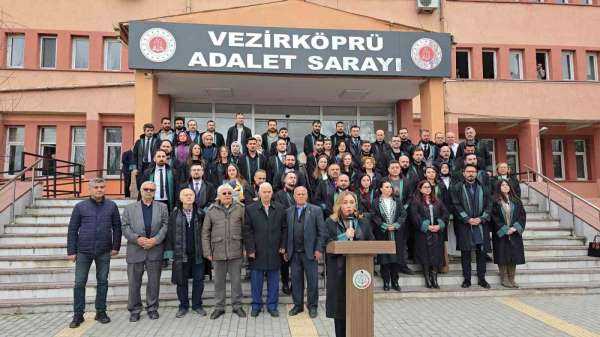 Burada konuşan Baro Başkanı Yıldıran, 'Samsun Barosu'na kayıtlı olan ve Vezirköprü ilçemizde görev yapan meslektaşımız, 26 Şubat 2026 tarihinde Vezirköprü Adliyesi 1. Asliye Ceza Mahkemesi'nde görülen duruşma sonrasında, mesleğini icra ettiği esnada duruşma salonunda karsı tarafın sözlü ve fiziki saldırısına maruz kalmıştır. Saldırının faili tutuklanmış ancak saldırının üzerinden henüz iki hafta dahi geçmeden, 11 Mart 2026 tarihinde hakkında tahliye kararı verilmiştir. Bu durum, yalnızca somut olay bakımından değil, avukatlık mesleğinin güvenliği ve yargının işleyişi açısından da son derece kaygı vericidir. Bu saldırı yalnızca bir avukata yönelmiş değildir; savunma hakkına, adaletin üç kurucu unsurundan biri olan savunma makamına yöneltilmiştir. Savunmayı hedef alan her saldırı, doğrudan doğruya hukuk devletine ve adalet sistemine yönelmiş bir tehdittir' dedi.