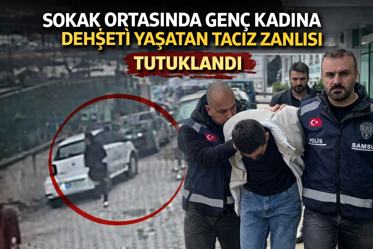 Olay, Atakum ilçesi Yenimahalle Mahallesi'nde dün meydana geldi. Edinilen bilgilere göre, perdecide çalışan O.K.K. (35) isimli şahıs, S.D. (28) isimli genç kadını bir süre takip ettikten sonra sokak ortasında elle tacizde bulundu. Yaşadığı dehşetin ardından şikayetçi olan kadının ihbarı üzerine Atakum İlçe Emniyet Müdürlüğü Suç Önleme ve Soruşturma Büro Amirliği ekipleri harekete geçti. Tacizcinin genç kadını takip anları saniye saniye güvenlik kamerasına yansıdı. Şüpheli polisin güvenlik kamerası kayıtlarını inceleyerek kimlik tespiti yapılıp kısa sürede yakalanarak gözaltına alındı. 17 ayrı suç kaydının bulunduğu öğrenilen O.K.K., polisteki işlemlerinin ardından bugün Samsun Adliyesine sevk edildi. Mahkemeye çıkarılan O.K.K., cinsel saldırı suçundan tutuklanarak Samsun T Tipi Kapalı Cezaevi'ne gönderildi.