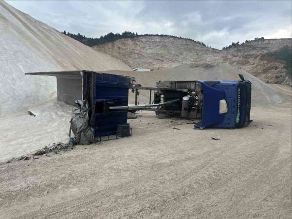 Edinilen bilgilere göre, Bilecik merkez Kuyubaşı köyünde faaliyet gösteren bir madencilik işletmesinde meydana gelen olayda, Resul Ü. idaresindeki 35 V 0185 plakalı kamyon, kum boşaltıldığı sırada yan yattı. Yaşanan kazada sürücü hafif şekilde yaralandı. İhbar üzerine olay yerine gelen acil sağlık ekiplerince yapılan ilk müdahalenin ardından şahsın sağlık durumunun iyi olduğu öğrenildi.