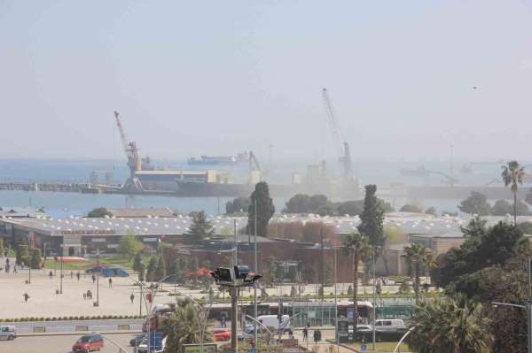Samsun'da limanda gemiye yapılan yükleme sırasında oluşan yoğun toz bulutu, rüzgarın etkisiyle kent merkezine taşındı.