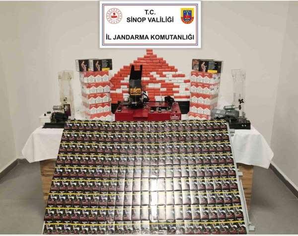 Sinop'un Gerze ilçesinde jandarma ekipleri tarafından düzenlenen operasyonda, çok sayıda kaçak makaron ve sigara üretim malzemesi ele geçirildi.