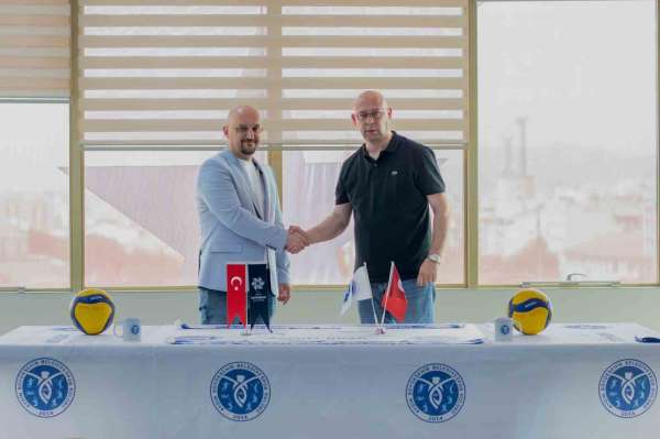 Aydın Büyükşehir Belediyesi'nde gerçekleştirilen imza töreninde Aydın Büyükşehir Belediyespor Kulübü Başkanı Polat Bora Mersin ve Voleybol Şube Sorumlusu Mehmet Volkan Zeytin yer aldı.